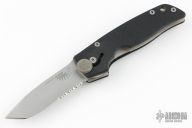 This knife by Camillus knives features a bead blasted partially serrated blade with notched thumbrest. The handle features black G10 scales over steel liners. Hard to find model. Features EZ opener slide button action. Black tip down clip. Comes with original box. Has a few scuffs, the clip has a mismatched screw and appears to be glued on as weel, otherwise good user condition.
