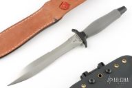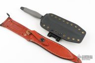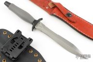 The Mark II is one of the best selling knives of all time. First introduced in 1966, this tactical knife is serialized for collectors. This one has a satin finished double edged partially serrated blade, .196" blade stock and 1.026" blade depth, hidden tang construction with a black/grey aluminum handle. This knife is Serial #043944 and was made in 1975. Comes with original brown leather sheath and a custom kydex sheath with TekLok. Excellent condition.