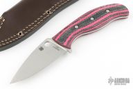 This Mule Team knife by Spyderco features a satin finished blade with skeletonized handle. This knife is intended to be finished by the buyer. You can add your very own handle. Comes with checkered pink/black scales with leather sheath. Excellent condition.