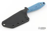 This Hiker by Terra Knives features a satin finished blade with notched thumbrest, .183" blade stock and 1.145" blade depth, full tang construction. The handle has blue jean tero-turf scales and lanyard hole. Comes with a kydex sheath, original box, and COA. Has some light scratches on the blade, excellent condition otherwise.