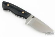 This Mini Huntsman features a satin finished blade with .109" blade stock and 1.280" blade depth, full tang construction. The handle has black richlite scales. Comes in a box. Has some light scratches on the blade, excellent condition otherwise.