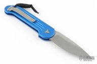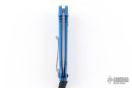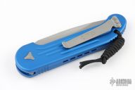 This LUDT side opening automatic by Microtech has a two-tone finished blade with a standard edge and a contoured blue aluminum frame. Matching stainless steel clip. Dated 02/2023 and serial number 30752. Comes with original box and papers. Excellent Condition.