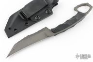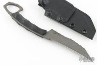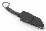 SHPOS "Sub Human Piece Of Shit" features an acid tumbled blade with a full tang construction, .155" blade stock and .991" blade depth. The handle black G-10 scales with a 1" ring. Includes a black kydex sheath. Excellent Condition.