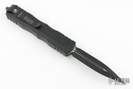This Dirac Delta OTF automatic by Microtech features a D/E black blade with a standard edges. The handle is black aluminum with stainless steel tip down clip and hardware. Serial number 6946 and dated 10/2022. Comes with original box and papers. Excellent condition.