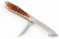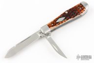 Handcrafted in the U.S.A., this classic American Case Eureka Jack is about 3 1/2 inches long (folded/closed) and weighs approximately 3.0 ounces. The handle is jigged Brown Bone with a Diamond Brushed Stainless Steel Inlay shield. The bolsters are Stainless Steel with Brushed Finish. This knife utilizes a 2 3/4" Drop Point blade and 2" Wharncliffe blade. Stamped with pattern number TB622017 154CM, the blades are 154-CM Stainless Steel with Satin finish. The knife is presented with Brown Suede Pouch. This Eureka Jack is a professional-grade tool that comes with a Limited Lifetime Manufacturer's Warranty and is not designed nor intended to be used on or against humans. So, whether you're hunting for authentic cutlery to collect, a top quality knife to give as a gift, or a superior tool to use, don't pass this one up!