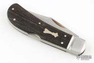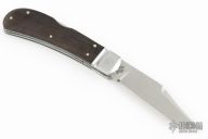 This Lanny's Clip Slipjoint by Case is a Tony Bose design. It has a satin finished clip point blade with swedge and nail nick. Handle is smooth ebony wood with nickel silver escutcheon, satin finished stainless steel fluted bolsters, liners, and spring. Centered blade and solid lockup. Comes with Case suede leather padded zipper case, and original box and paperwork. Excellent condition.