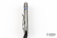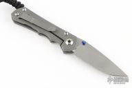 This Small Inkosi from Chris Reeve Knives features a tumble finished drop point blade with dual anodized thumb studs and notched thumbrest. The handle has a glass blasted titanium frame over a single barrel spacer with a matching bead blasted titanium tip up clip. Includes original box, leather slip, lube, tools, and COA dated Nov 30, 2023. Thumbstuds have a little bit of wear. Excellent Condition otherwise.