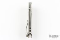 This Neutron Linerlock by Three Rivers features a stonewash finished blade with dual thumbstuds. The handle has milled titanium scales, titanium liner with a titanium tip up reversible clip. Nice detent, lockup and blade seating. Comes with original box and papers. Excellent condition.