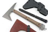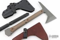 RMJ teamed up with Bawidamann Blades in 2012 to create a lightweight tomahawk that is fast in the hand and different than other tomahawks; thus the Ragnarok was born. Now after several years of making the Ragnarok for Bawidamann Blades, RMJ is now offering a production version. The RMJ Ragnarok is the same tomahawk with angled and textured G10 handles, as well as a Tungsten Gray Cerakote Finish.