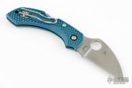 The Dragonfly 2 is one of the most size-efficient folding knives ever created, especially when expressed with a straight-edged Wharncliffe-style blade. When that blade is crafted from tough, wear-resistant K390 tool steel, the result is a compact, powerhouse cutting tool that will take and hold an exceptional edge. Like the standard Dragonfly 2, this knife also features a user-friendly back lock and a reversible deep-pocket wire clip, but its linerless FRN handle is molded in the signature blue color of Spyderco’s K390 family of knives.