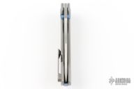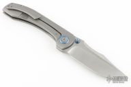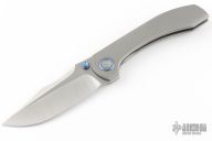 This Raptor by Brian Brown features a satin finish clip point style blade with dual thumbstuds. The handle has a titanium frame with anodize finish pivot collars, tip up clip and backspacer. Comes with original box and zippered case. Excellent condition.