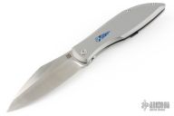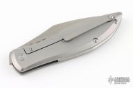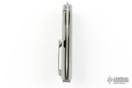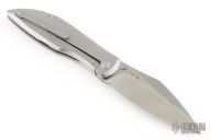 This Weyden by Artisan Cutlery features a satin finished blade with notched thumbrest and front flipper. The handle has a milled and bead blasted titanium frame with a mokuti escutcheon, bead blasted titanium backspacer and tip up clip. Comes with original box, papers and zippered case. Excellent condition.