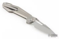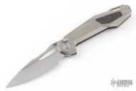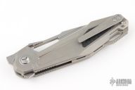 This Griffin by Ketuo features a matte finished blade with notched thumbrest and flipper. The handle has a bead blasted titanium frame with carbon fiber inlays, bead blasted titanium backspacer and tip up clip. Comes with original zippered case. Excellent condition.