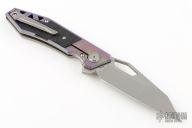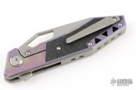 The Bestech Fractal is a modern and angular design with a compound grind. The part of the blade near the point has a hollow grind for precise piercing cuts, and the part near the handle has a flat grind for added durability with harder cuts. The handle is made of titanium with a shred carbon fiber inlay.