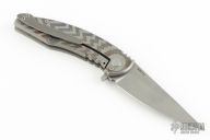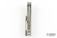 This Orion Flipper by Fodale Knives features a tumbled S35VN blade with notched thumbrest and flipper. The handle has a tumbled titanium frame with custom Ano, a tumbled titanium tip up clip. Nice detent, lockup and blade seating. Excellent condition. Comes with Fodale Knives box. Has a couple light scratches, otherwise excellent condition.