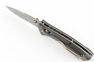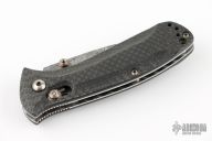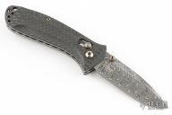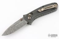 This Benchmade 525-81 Mini-Presidio Axis #565 features an acid-etched Hakkapella Damasteel stainless Damascus drop point blade, auto-axis ambidextrous locking mechanism, and hand finished carbon fiber scales over jeweled liners. Hand polished and heat colored bronzed hardware, clip, barrel spacers, and thumbstuds. Includes original box and hard case. Has a few light scratches on the clip otherwise the knife is in excellent condition.