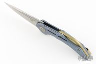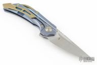 - Stunning blue titanium handle with silver and gold-tone metal accents.