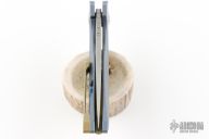 Designer Grzegorz Grabarski (AKA Kombou) has teamed up with Bestech Knives once again for this jaw-dropping work of art in a manual folder. The contrasting metal backspacer extends from the body of the knife for a seriously cool lanyard space. The grooves and futuristic details seem to have been acquired with the help of a time machine. Yet, the designs of the blade and handle are impossibly simple and clean. The straightness of the spine slides effortlessly into heavy jimping, and then flows down the handle through the backspacer. Despite the fluidity, the knife manages to wield a bold and aggressive look. With the razor sharp blade and a maneuverable ideal, this beauty marries function and design with a satisfying result. You're going to want this one for your collection.