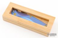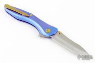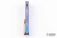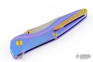 61 HRC, cryo-treated, CPM-20CV stainless drop point blade with hollow grind edge. Aerospace quality grade 5 titanium handle and fittings. Reversible titanium clip for right or left hand carry. Precision stainless bearings.