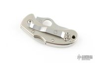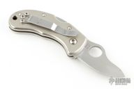 This knife by Spyderco features a satin finished blade with thumbhole and notched thumbrest. The handle has tuff ram coated aluminum scales, stainless steel backspacer and tip up left or right stainless steel clip. Has scuffs/scratches otherwise the knife is in good condition.