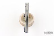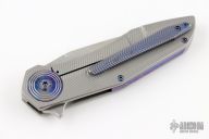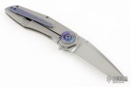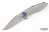 This Cluprit flipper from Steven Skiff features a hand rub satin finished blade with false top edge and flipper. The handle has a milled and bead blast finished titanium frame with anodized titanium tip up clip, pivot collars and backspacer, and anodized titanium hardware. Very smooth action with a nice detent, lockup and blade seating. Includes  zippered case. Has some light scuffs and scratches, great condition otherwise.