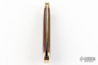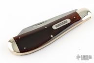 This Ka-Bar slipjoint has a mirror polished blade with nail nick. The handle has nickel silver bolsters, dymondwood covers, brass liners, and stainless steel spring. Excellent condition. Comes with original box.