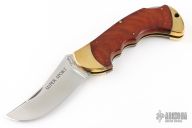 This lockback by Valor has satin finished blade with nail nick. The handle has brass bolsters, rosewood scales, brass liners, stainless steel spring. Comes with original box. Has a few light scratches, otherwise excellent condition.