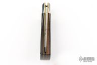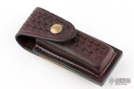 This vintage lockback folder by Smith and Wesson features mirror finished blade. The handle has nickel silver bolsters, wood scales, brass liners, stainless steel backspacer. Excellent condition. Comes with original box, papers and black leather sheath.