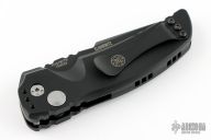 This EX-A01 by Hogue Knives is an Allen Elishewitz design, it features a black tanto partially serrated 154CM blade with notched thumbrest. The handle is black aluminum, tip up or down reversible black stainless steel clip. Has safety. Comes with Hogue box and papers. New condition.