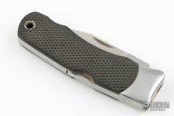 This Stingray lock back by SOG features a satin finish blade with false top edge and nail nick. The handle has satin finished stainless steel bolsters, liners and backspacer, kraton scales. Strong lock up. Comes with original box and papers. Has some light scratches, otherwise excellent condition.