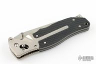 The Fatcat is the largest and most massive folder SOG® Specialty Knives has ever produced. Not intended for the main stream, it is designed with heavy work in mind. For its size, it is amazingly light and quick to open. The machined Titanium frame attributes to the lightness while the textured Zytel® handle scales insure good grip in extreme conditions. The weight is amazing for such a massive knife. If you like big, you will like the Fatcat. The 4-1/2" blade is VG-10 stainless steel at 59-60 Rc., with a never before seen dual tone TiNi coated blade. The bevel, blood groove (fuller) and the back of the blade are black TiNi coated, while the rest of the blade has a nice satin finish. Locks with SOG's own patented ARC-Lock™. Excellent condition. Comes with original box, sheath and papers.