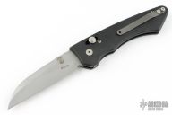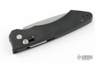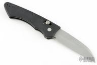 This Waco automatic by Rob Dalton features a bead blasted and chisel ground wharncliffe blade and black aluminum frame. Bead blast titanium clip, tip up carry. Side opening, coil spring. The bar lock release is used to open and close the knife and can be operated with either hand. Numbered 317 on back of frame. Has a few light spots on the blade and a couple of scuffs on the frame,otherwise good condition.