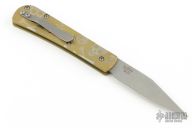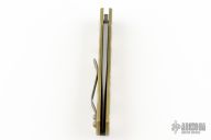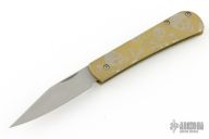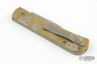This production slipjoint folder by Serge Panchenko features a stonewashed M390 blade with nail nick. The handle is anodized and stonewashed titanium with a tip up clip. Has a halfstop, flush in all postions. Comes in original packaging. Excellent condition.