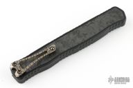 This Cleric II OTF by Heretic Knives features a Vegas Forge Polished Damascus Tanto blade with fullers. The handle has a black aluminum frame with marble carbon fiber inlays, flamed titanium button and tip down clip with ceramic ball. Comes with original box, zippered case and COA. Excellent Condition. Dated 08/2022 and #027