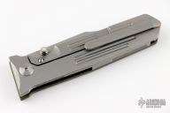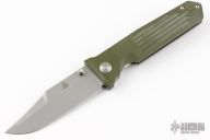 The STS-G10 folder design is a modern, technical, framelock folder featuring a distinct clip point blade inspired by the classic Loveless chute knife. This PDW edition features a premium Böhler M390 blade, OD Green G10 presentation handle side, billet titanium framelock handle side, lock bar limiter, and ceramic bearings in the pivot for a smooth action.
