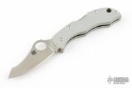 This Jester by Spyderco features a satin finished blade with thumbhole and notched thumbrest. The handle has grey G-10 scales, stainless steel liners and backspacer, lanyard hole. Comes with original box. New condition.