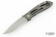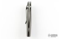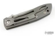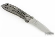 This Harsey Airframe by Gerger Knives features a satin finished spear point blade, notched thumbrest and dual thumbstuds. The handle has a skeletonized titanium frame black backspacer, bead blasted liner and tip down clip. Nice detent, lockup and blade seating. First Production Run. Comes with original box and papers. Has a light scuff on the clip, otherwise excellent condition.
