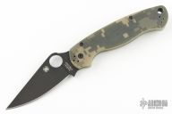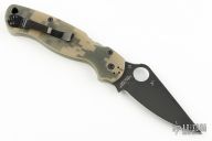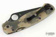 This FACTORY SECOND Paramilitary 2 Linerlock Folder has a black CPM S30V stainless steel clip point blade with thumb hole and notched thumb rest. Handle is digi camo G10 with stainless steel liners and black stainless steel 4-way reversible clip. Has a few light scuffs, otherwise excellent condition.