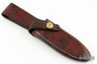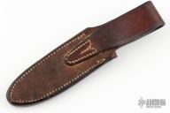 Brown Leather Randall Sheath by Johnson's Leather. Model A style sheath - Fits Model 1-4, Model 5-4, Model 8-4. Has some wear, otherwise good condition for its age. Back of sheath is stamped "SB4"