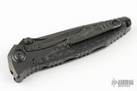 This Socom Bravo by Microtech is made in China by Rike Knife, it features a black blade, notched thumbrest, and dual thumbstuds. The handle has black titanium bolsters/liners, black pivot collars, carbon fiber scales. Tip up carry black titanium clip. Black titanium backspacer. Comes with original box and papers. Excellent condition.