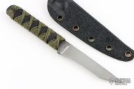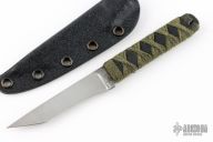 This knife by Ecos knives features a tanto blade with .188" Blade Stock. .760" Blade Depth. The handle has epoxied cord wrap. Includes a kydex sheath. Excellent Condition.