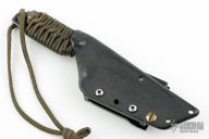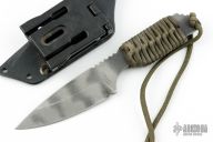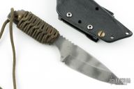 This SA-L by Mick Strider features a tiger striped drop point blade with a notched thumbrest, .195" blade stock and 1.329" blade depth, full tang construction. The handle has a cord-wrapped grip. Comes with a kydex sheath.  Has scuffs and scratches but would make a great user.