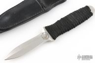 This PD-7 dagger by EK Knives features a satin finished double edged blade, .156" blade stock and .749" blade depth full tang construction with a paracord wrapped handle. Comes with a black leather sheath with boot clip and original box and papers. Excellent condition.