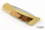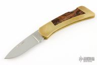 This Folding Sportsman I by Gerber features a mirror finished blade with nail nick. The handle has a brass frame with wood inlays. Comes with original box. Excellent condition.