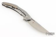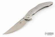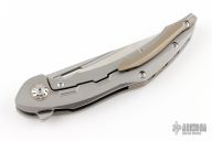 This Marukka Frame Lock Knife model has a forged, gray titanium handle and M390 stainless steel.