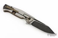 This model of the Bestech Horus sports a satin gray titanium handle with carbon fiber inlays and blue accents and a stonewashed blade made from S35VN.