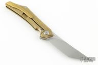 This Kamoza has a gold titanium handle and a satin M390 blade.