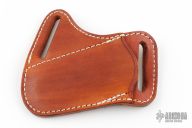 This cross draw sheath by A&M Leather is handcrafted from top quality leather. Made primarily for slipjoints - with a 1.75" opening and 4" pocket. Very well-made. New from maker.