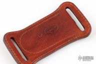 This cross draw sheath by A&M Leather is handcrafted from top quality leather. Has hole in the bottom of the sheath to push the knife out easier. Made primarily for slipjoints with a 1.625" wide opening and 3.75" pocket. Very well-made. New from maker.