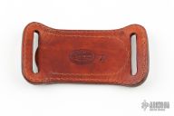 This cross draw sheath by A&M Leather is handcrafted from top quality leather. Has hole in the bottom of the sheath to push the knife out easier. Made primarily for slipjoints with a 1.625" wide opening and 3.75" pocket. Very well-made. New from maker.
